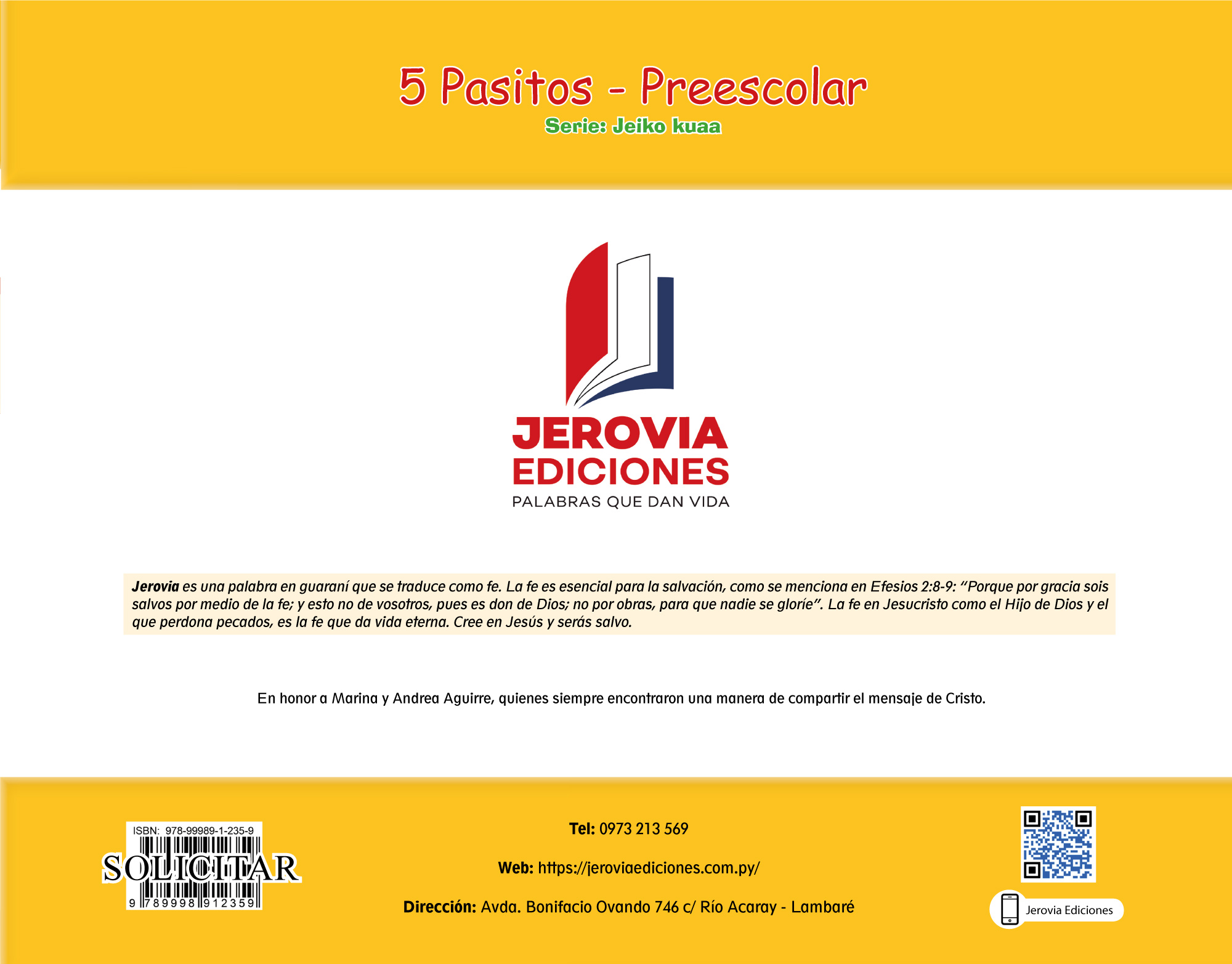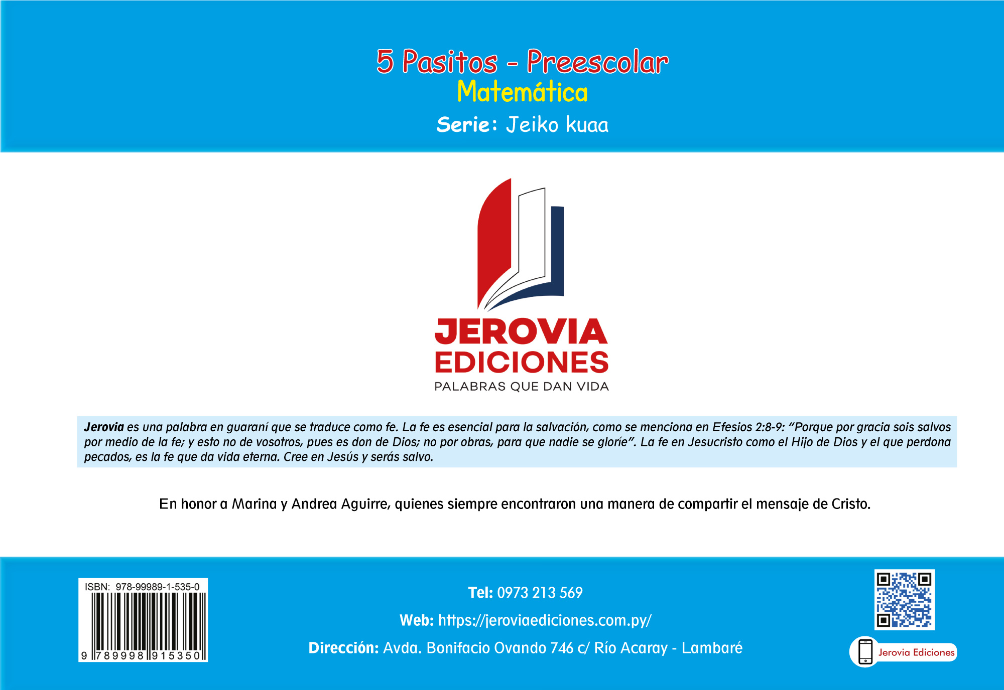 ₲ 85.000«5 Pasitos» es un libro educativo para preescolar que acompaña a los niños en sus primeros pasos de desarrollo social y personal. A través de actividades prácticas y sencillas, los pequeños aprenden a expresar sus emociones, a relacionarse respetuosamente con otros y a conocer su entorno natural y cultural. Este libro sigue los lineamientos del MEC, asegurando contenidos adecuados que preparan a los niños para construir relaciones sanas y fortalecer su identidad desde temprana edad.